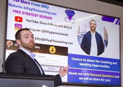 Billy’s engaging and interactive presentations leave a lasting impact, inspiring his audiences to take immediate action. His ability to connect with people on a personal level-whether students navigating challenges or professionals striving for peak performance-makes him a game-changer in the personal and professional development space.